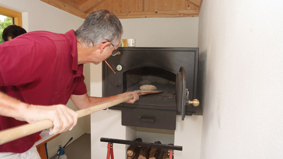 Der Holzofen gibt dem Brot durch seine gleichmäßige Hitze und die Harze im Fichtenholz sein typisches Aussehen und Geschmack.